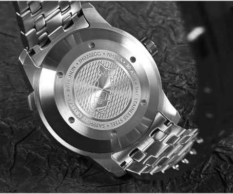 Deep Challenger-JH0202 builds on the foundation of the JH0201, maintaining its 300m water resistance while introducing a GMT function, allowing you to track multiple time zones effortlessly. This addition enhances its practicality, making it ideal for both deep-sea exploration and global adventures.